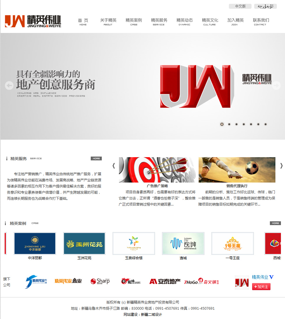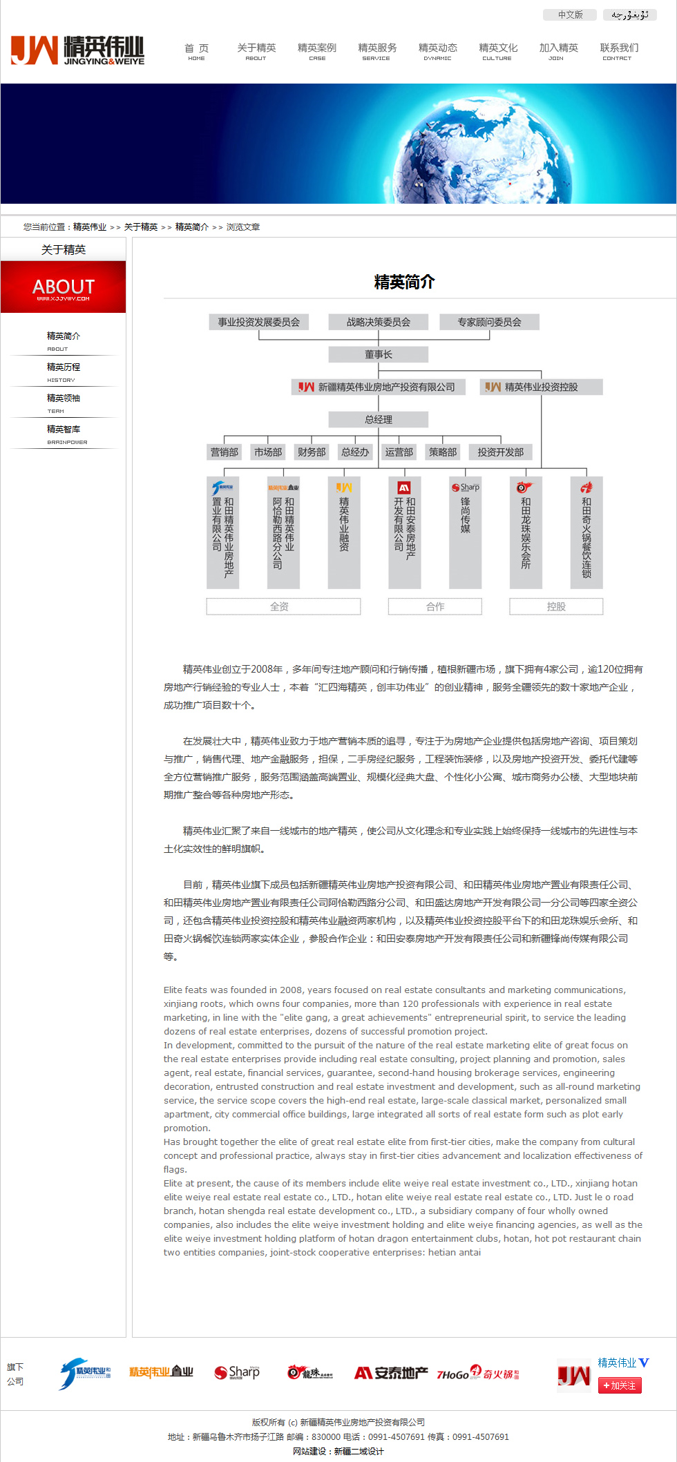 精英偉業(yè)創(chuàng)立于2008年,多年間專注地產(chǎn)顧問和行銷傳播,植根新疆市場,旗下?lián)碛?家公司,逾120位擁有房地產(chǎn)行銷經(jīng)驗(yàn)的專業(yè)人士,本著“匯四海精英,創(chuàng)豐功偉業(yè)”的創(chuàng)業(yè)精神,服務(wù)全疆領(lǐng)先的數(shù)十家地產(chǎn)企業(yè),成功推廣項(xiàng)目數(shù)十個(gè)。
