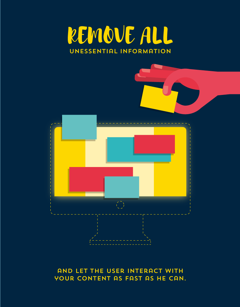 你要學會移除非必須的信息,讓用戶可以盡可能快地同你的網頁內容進行交互。