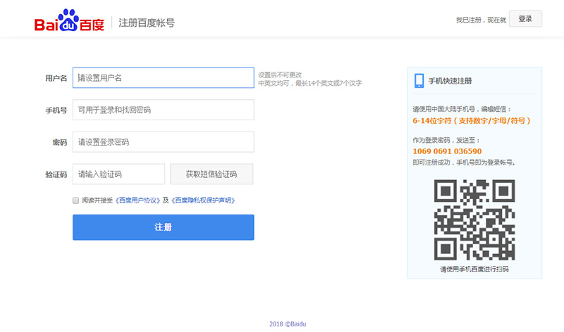注冊百度賬號