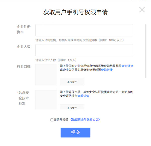 獲取用戶手機號權限申請