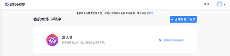 信息審核通過后,進入首頁會有認證的鏈接,點擊后跳轉到認證頁面,認證通過即可創建智能小程序并正常使用平臺各項功能。