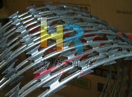 規(guī)格多,品種全.(2012)8001-8002/鐵路工程建設(shè)通用規(guī)格.刺絲滾籠刺長22mm, 圈徑為500mm,芯線2.5mm,刀刺中心間距34mm,刀片厚度0.5mm,刺絲滾籠圈距200mm,立柱支架30x50x2mm,縱向刺絲拉筋2.5x2.2x20mm,支架抱箍為8mm,配件都采用熱鍍鋅處理.